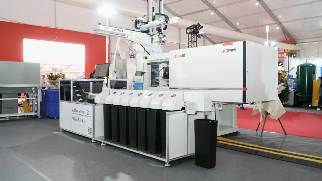 在力劲塑机【9A-02A】展台,整套智能生产单元的现场高效运转演示,吸引众多专业观众驻足品鉴。当高性能全电动高速注塑机ELE130在成型周期≤18S内迅速完成制品射出,并连接自主研发的五轴精准机械手臂同步取件,AI 视觉智能分拣系统即刻响应:高速摄像头瞬时捕捉传送带上每件产品的图像及尺寸,内置深度学习算法以毫秒级速度完成产品形状、型号与颜色的实时判定,同步完成精准分拣决策,每小时可以精准分拣不同尺寸产品高达12000次,众多国内外观众为此完美全套玩具解决方案顿时竖起大拇指,为机器的精密高效智能制造点赞。